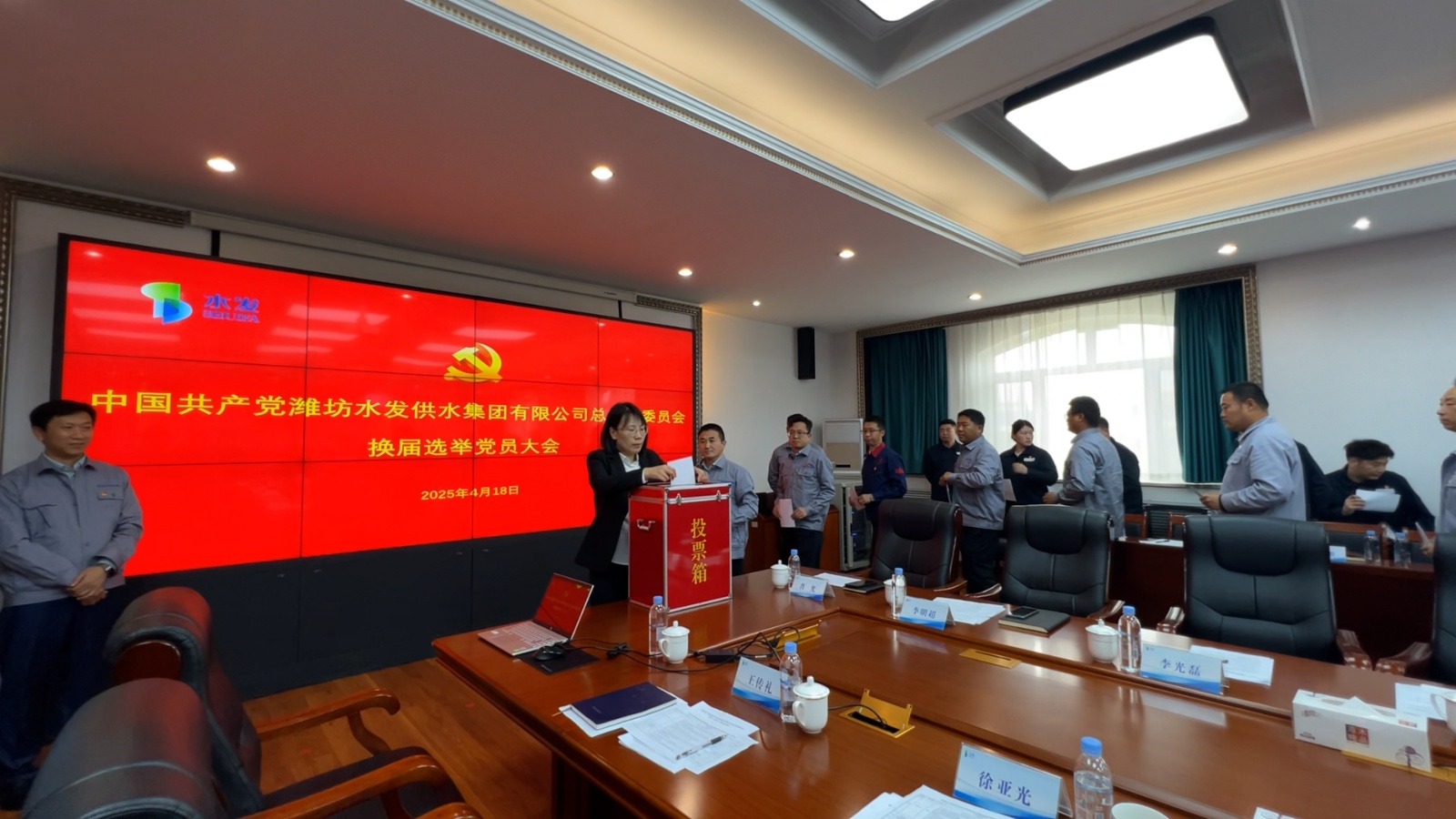 4月18日,中國共產(chǎn)黨濰坊水發(fā)供水集團有限公司總支部委員會換屆選舉黨員大會在供水集團隆重召開,供水集團黨總支班子成員、黨員59人出席大會,水控集團黨委委派專人到會指導。