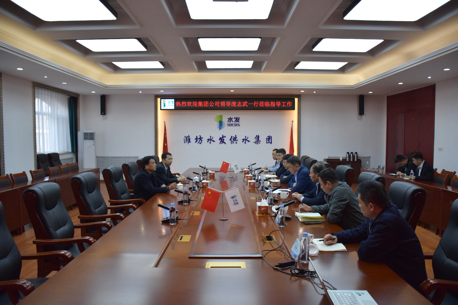 3月14日,水發(fā)水務(wù)控股集團(tuán)有限公司(籌)工會(huì)主席龐志武、統(tǒng)戰(zhàn)部副部長盧昌誠一行到濰坊區(qū)域調(diào)研指導(dǎo)工作,水發(fā)水控濰坊區(qū)域總經(jīng)理、供水集團(tuán)董事長張勇及相關(guān)公司負(fù)責(zé)人參加座談。